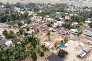 Banjir yang menghancurkan permukiman masyarakat di Meureudu, Pidie Jaya, Aceh.
