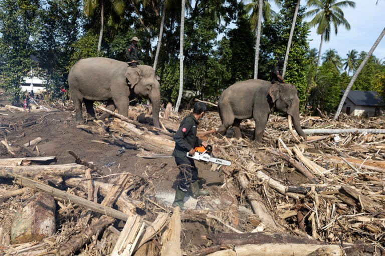 Gajah bukan pengganti alat berat dan tidak seharusnya dibebani tugas memindahkan kayu-kayu besar yang terbawa banjir. Pembersihan puing dan material berat, semestinya menggunakan ekskavator atau peralatan mekanik lain.